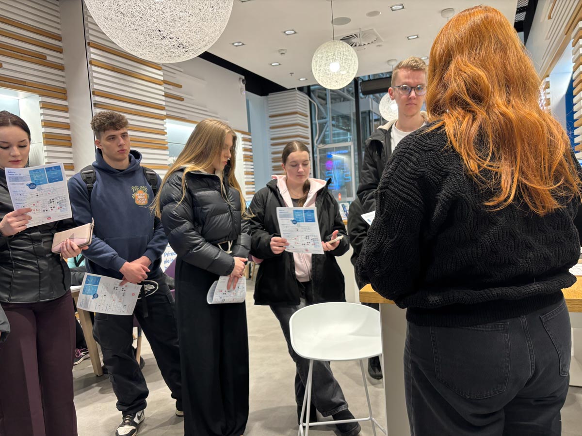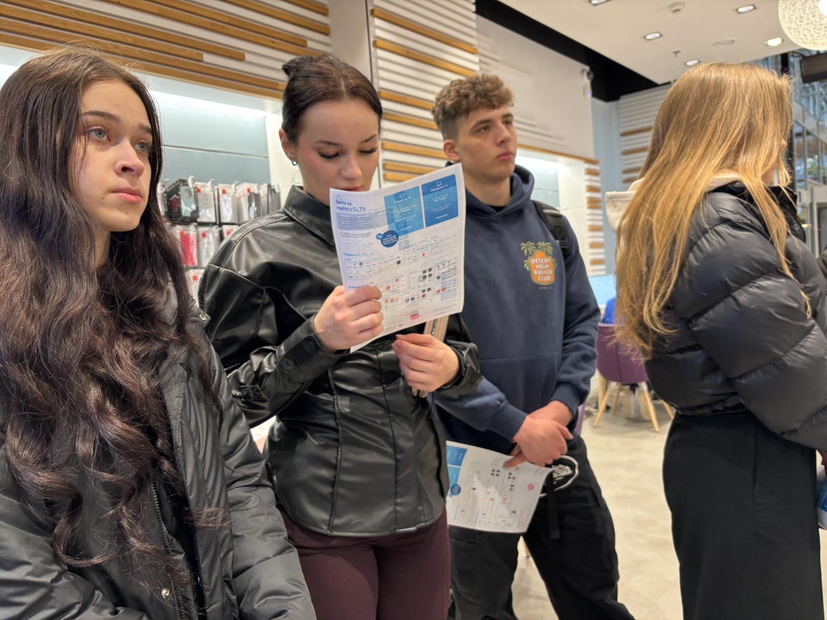 V predajni O2 nás privítala Silvia Fašková, brand store supervisor, ktorá žiakom predstavila služby, ktoré operátor O2 ponúka, ako aj niekoľko originálnych riešení, ktoré konkurencia zatiaľ nemá. Prekvapujúcou bola najmä informácia, že O2 dokáže preniesť televízne služby od iného operátora priamo k nim. Žiakom následne rozdala bulletiny so stručným prehľadom ponúk a zdôraznila, že dôvera medzi zákazníkom a predajcom, ako aj dobré vzťahy sú dnes mimoriadne dôležité a výrazne pomáhajú budovať povedomie o značke.