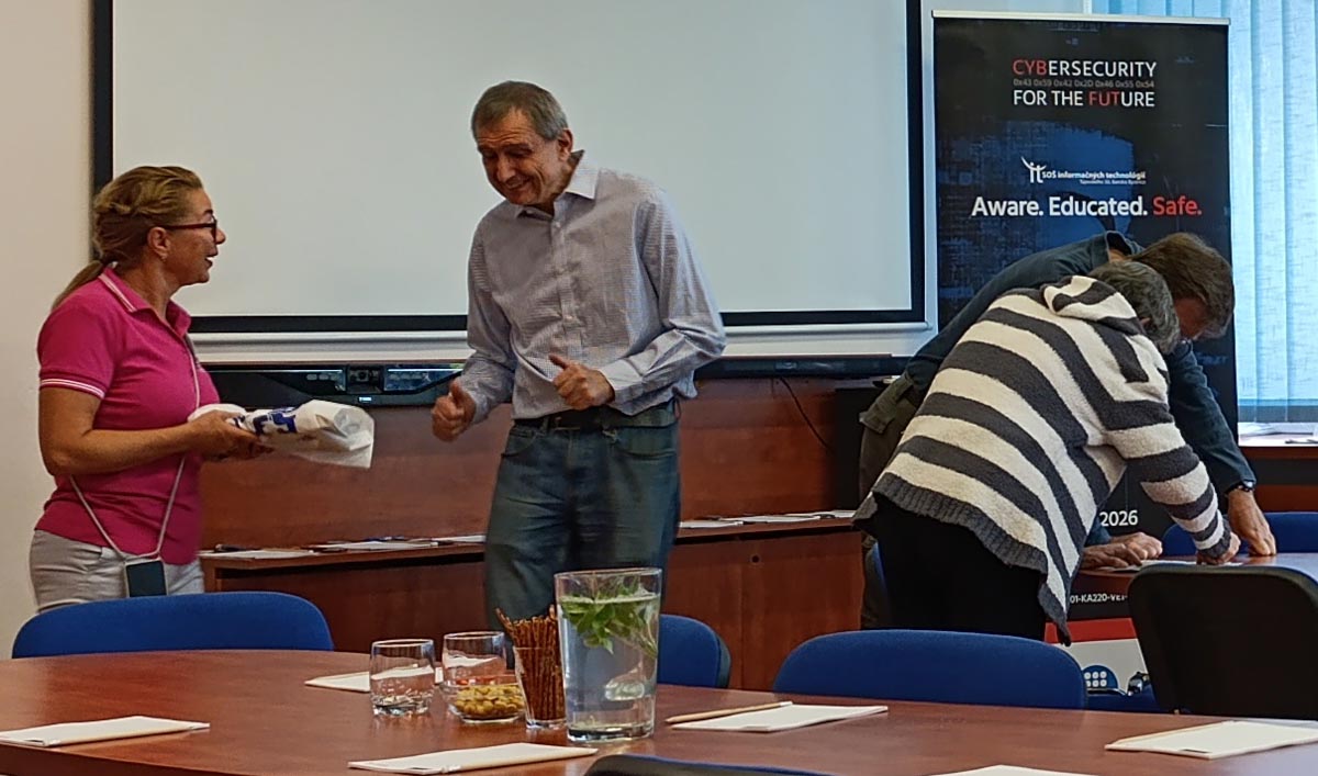 V septembri tohto školského roka sa na našej škole uskutočnilo medzinárodné pracovné stretnutie venované tomuto projektu. Zišli sa na ňom zástupcovia konzorcia zo Slovenska a Českej republiky, aby spoločne zhodnotili doterajší priebeh projektu, vymenili si skúsenosti a naplánovali ďalšie kroky potrebné pre jeho úspešné pokračovanie. Naša škola bola v projekte poverená revíziou textových aj laboratórnych cvičení z oblasti kybernetickej bezpečnosti, ktoré pripravili partnerské vysoké školy.