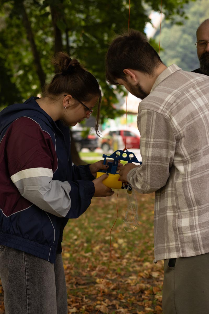 Ale to nebolo ešte všetko. Čakalo na nich ešte jedno prekvapenie. Cansat. Mgr. Jozef Novák a žiaci tretieho ročníka predstavovali potenciálnym záujemcom možnosť pridať sa do tímu CanSat. Naša škola sa úspešne zúčastnila tejto súťaže už po druhý krát a preto sme chceli zvýšiť povedomie žiakov o tejto súťaži a pritiahnuť nových žiakov do tímu. Nechýbali ani ukážky vypúšťacieho mechanizmu satelitov, padákov a 3D modely hotových a testovacích výrobkov.