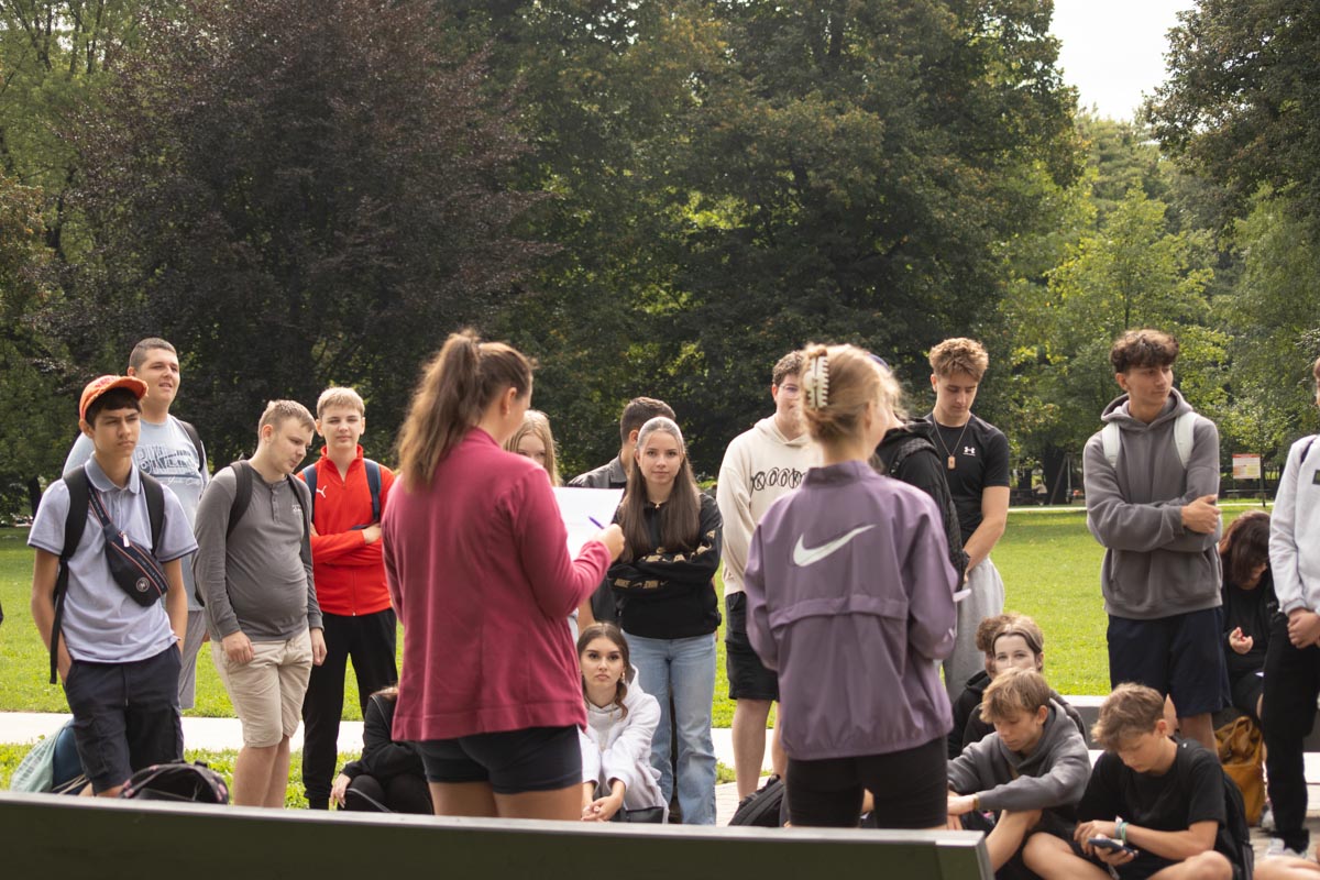 V stredu 10. septembra 2025 vykročili žiaci všetkých tried prvého a druhého ročníka zo školského ihriska po trase, ktorá viedla cez Strieborné námestie, Námestie SNP až do parku pod pamätníkom SNP, kde mali absolvovať účelové cvičenia.