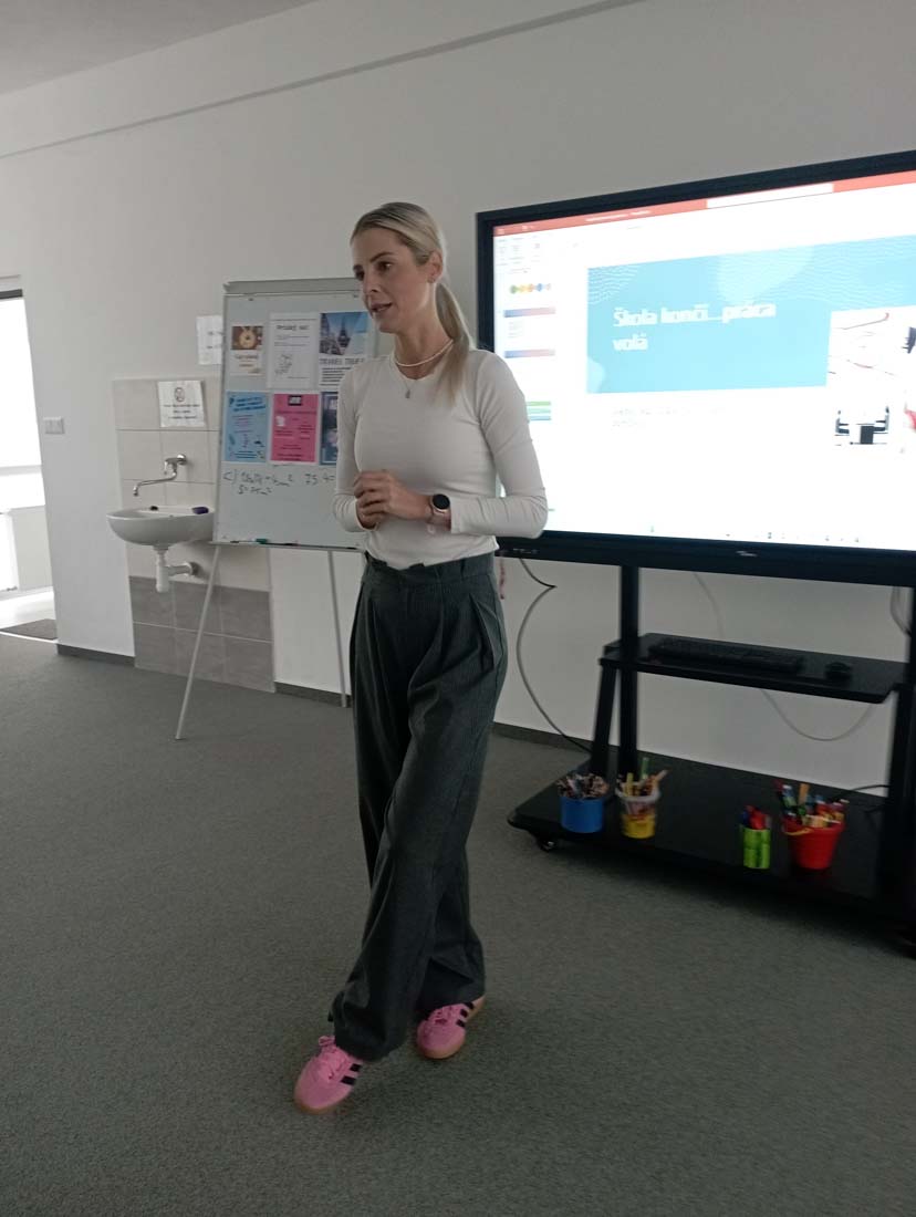 Po absolvovaní pracovných pohovorov s pracovníkmi marketingu v I. E sme 17. apríla 2024 pokračovali v tematike personálneho manažmentu absolvovaním ďalšieho workshopu v Centre mladých, na Tajovského ulici č. 25 v Banskej Bystrici. Lektorka Mgr. Janette Bursová z Centra voľného času Junior si pre žiakov pripravila niekoľko aktivít a prezentáciu pod názvom „Škola končí, život volá“. Tu sa dozvedeli množstvo informácií súvisiacich s prípravou na pracovný pohovor a okrem iných, už spomenutých aktivít, si mali možnosť vyskúšať aj tvorbu netradičného životopisu na určité pracovné pozície a prečítať si niekoľko úspešných motivačných listov.