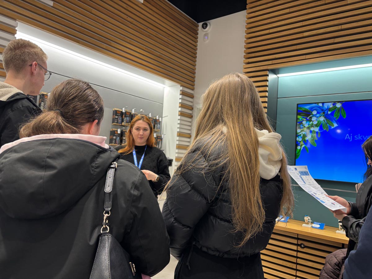 V predajni O2 nás privítala Silvia Fašková, brand store supervisor, ktorá žiakom predstavila služby, ktoré operátor O2 ponúka, ako aj niekoľko originálnych riešení, ktoré konkurencia zatiaľ nemá. Prekvapujúcou bola najmä informácia, že O2 dokáže preniesť televízne služby od iného operátora priamo k nim. Žiakom následne rozdala bulletiny so stručným prehľadom ponúk a zdôraznila, že dôvera medzi zákazníkom a predajcom, ako aj dobré vzťahy sú dnes mimoriadne dôležité a výrazne pomáhajú budovať povedomie o značke.