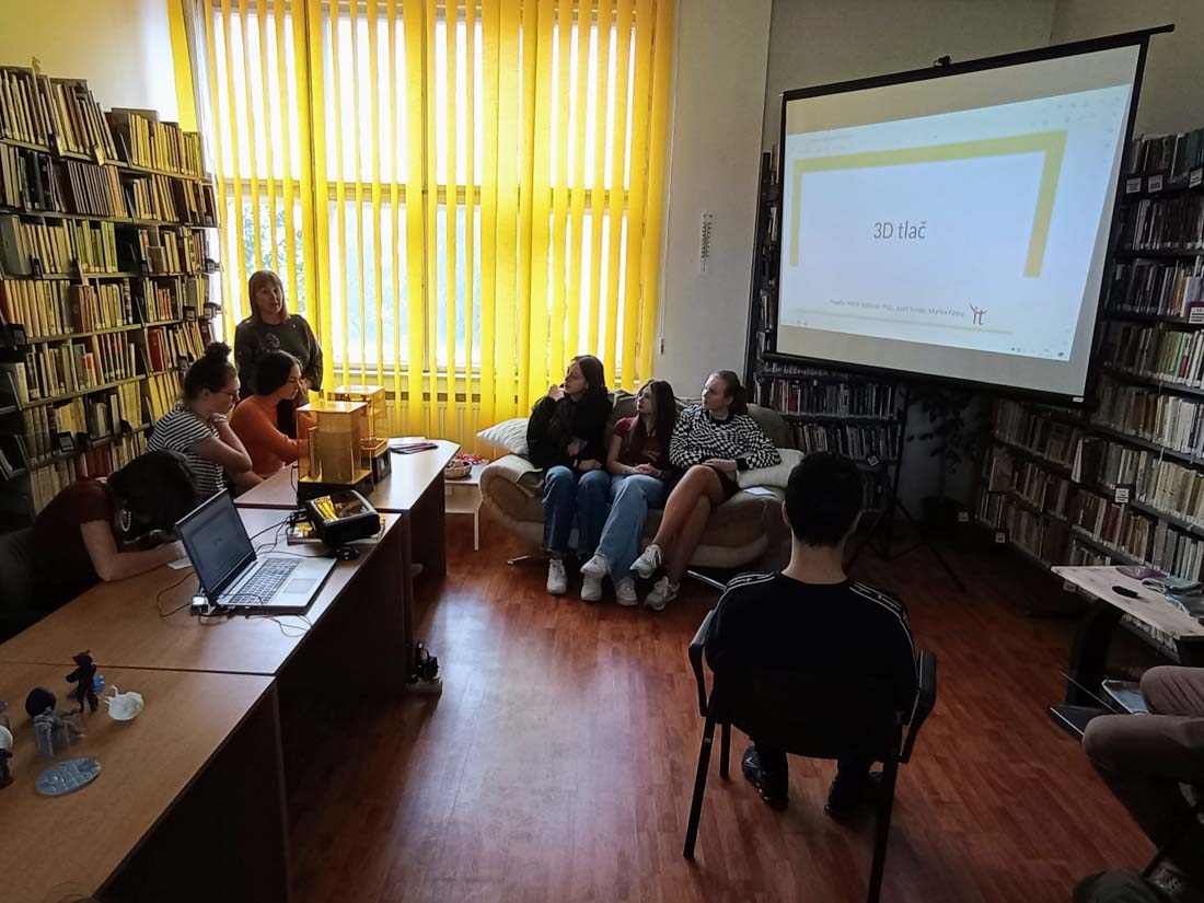 „Je to projekt, ktorý sme zrealizovali s finančnou podporou z rezervy predsedu vlády SR. Cieľom knižnice nie je len požičiavať knihy, ale mala by slúžiť aj ako centrum, kde sa stretávajú rôzne komunity. Naším zámerom je vytvoriť z Verejnej knižnice Mikuláša Kováča modernú kultúrnu a vzdelávaciu inštitúciu, ktorá je svojimi aktivitami zaujímavá pre čo najširšiu verejnosť. Aby sme tieto aktivity mohli plnohodnotne realizovať, potrebujeme na ne dostatok finančných zdrojov, ktoré sa snažíme získavať aj zapájaním sa do rôznych výziev. A jednou z nich bola minulý rok aj výzva Úradu vlády SR, ktorá mala za cieľ poskytnúť príjemcom dotáciu na realizáciu činností v oblasti vedy a inovácií. Do výzvy sme sa zapojili s projektom pod názvom „Programuj, kreatívne mysli a pracuj s 3D tlačiarňou“ a nakoľko bol náš projekt úspešný, získali sme dotáciu. Cieľom projektu bolo zlepšiť digitálne zručnosti mladých ľudí, podporiť rozvoj kreatívneho a kontinuálneho myslenia, v neposlednom rade podnietiť u žiakov základných škôl záujem o štúdium s týmto zameraním. Robíme teda aj osvetu pre školy. Zakúpili sme 3D tlačiareň, jeden PC a sadu mikrobitov na jednoduché programovanie a na základe zmluvy s Centrom vedecko-technických informácií v Bratislave sme za účasti ich dvoch lektorov zrealizovali vzdelávacie workshopy pre naše knihovníčky a následne aj pre verejnosť – žiakov 2. a 4. ročníka Strednej odbornej školy informačných technológií na Tajovského ulici v Banskej Bystrici. A vtedy vznikol nápad nadviazať s vami spoluprácu a pokračovať tak v udržateľnosti tohto projektu,“ povedala nám po príchode do Verejnej knižnice Mikuláša Kováča v Banskej Bystrici jej projektová manažérka Mgr. Jana Rapčanová. Škola túto výzvu prijala a aby osvojovanie si zručností s 3D tlačou bolo pre žiakov základných škôl prirodzenejšie, okrem majstrov odbornej výchovy Mgr. Jožka Nováka a Martina Fábryho zapojila do workshopov aj žiakov.