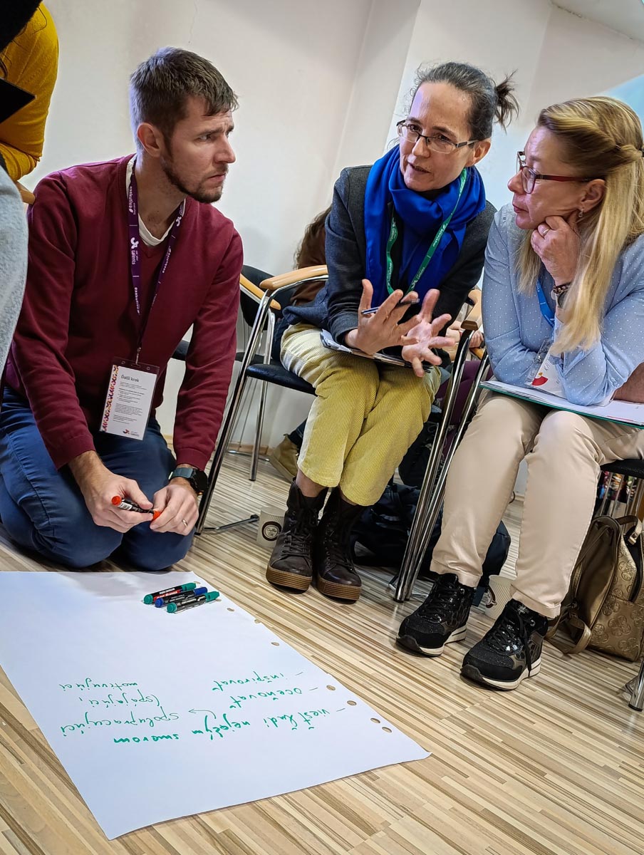 Spôsob, ako s týmito informáciami pracovať v rámci spolupracujúcej skupiny, sme potom objavovali na workshope s Jarom Dodokom, koučom silných stránok certifikovaný Gallup® a Janou Bernaťákovou z Inštitútu zmeny. Dôležitým na tejto akcii bolo pre nás nielen stretnutie s pedagógmi z iných škôl v pôsobnosti BBSK, ale hlavne pomenovanie problémov, ktoré môžu nastať pri zavádzaní zmien. Uvedomili sme si, že empatia, jasná komunikácia a podporné vedenie vedia vybudovať dôveryhodné prostredie. Minimalizáciou nepohodlia sa ľudia viac otvoria a môžeme sa dozvedieť dôvody, prečo sa niekto zmene bráni a čo môžeme urobiť s využitím našich talentov, aby sme odpor zmiernili. Lebo ako sme sa dozvedeli, „rezistencia nie je prekážka, ale spätná väzba“, ktorá nám ukazuje, čo je pre ľudí dôležité.