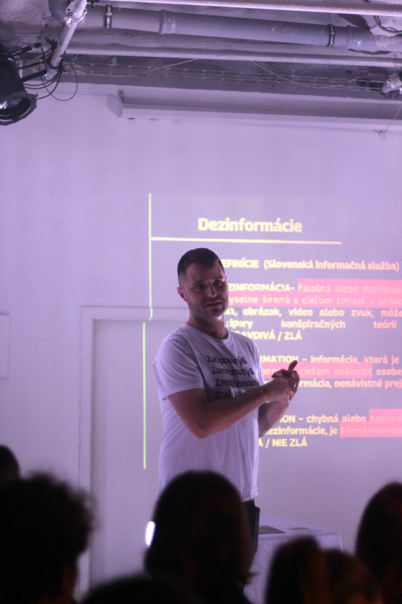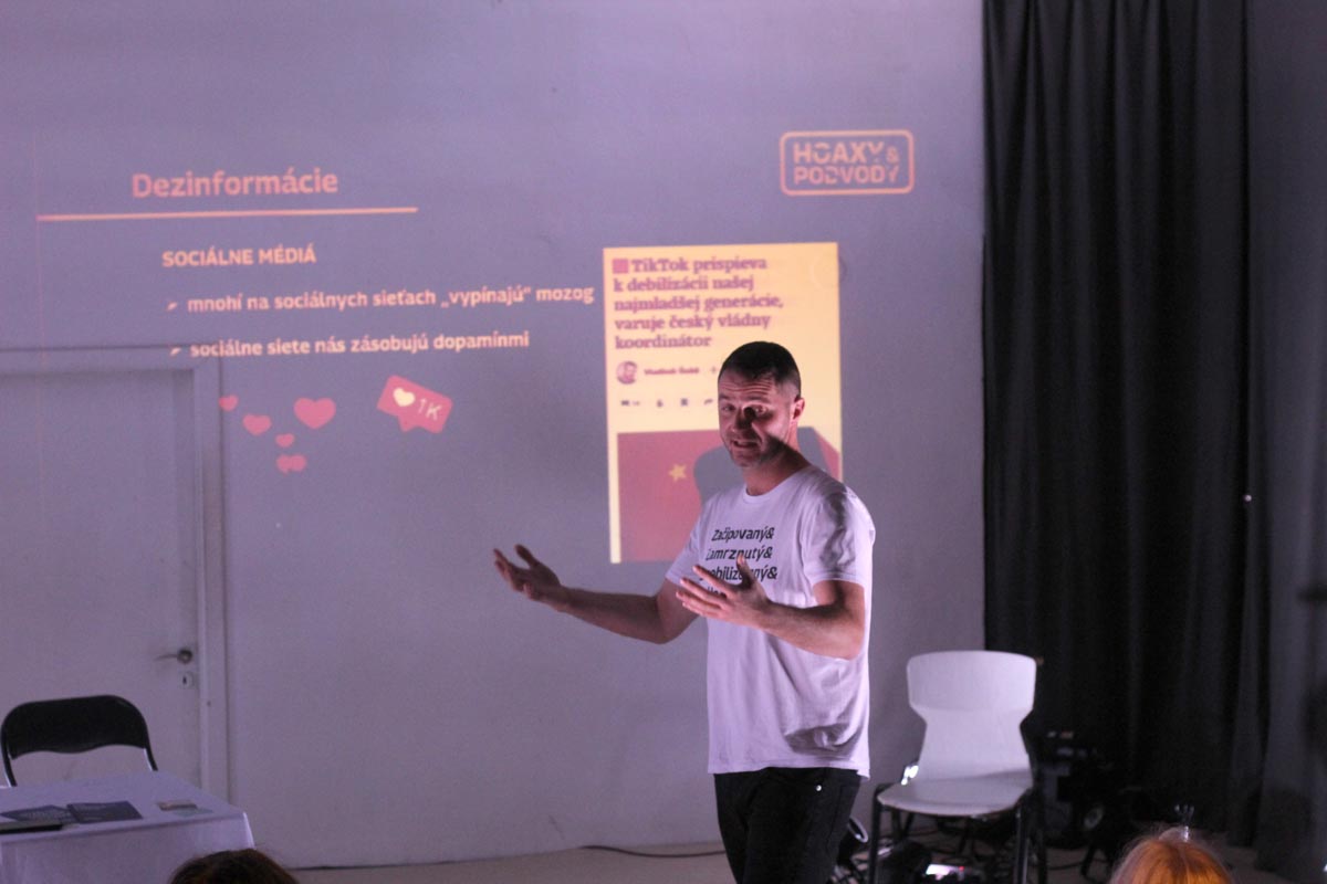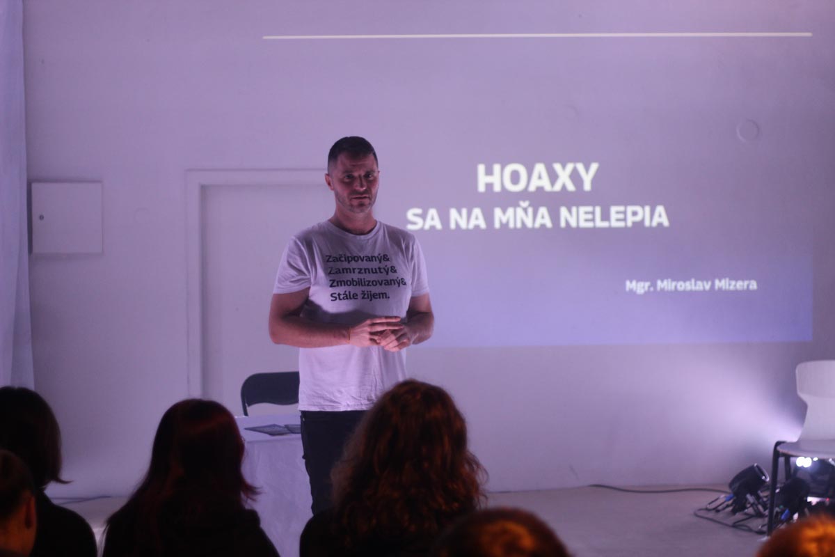 Bezprostredne po predstavení nasledovala prednáška a diskusia s Dávidom Púchovským a Miroslavom Mizerom z OZ Hoaxy a podvody. Debata bola zameraná na oblasť informačnej gramotnosti, boj proti dezinformáciám a na strategickú komunikáciu medzi mladými ľuďmi, ktorí sú podľa výskumov spolu s občanmi nad 55 rokov najzraniteľnejšími skupinami obyvateľstva vo vzťahu k dezinformáciám a misinformáciám, a to v rámci SR, ako aj EÚ.