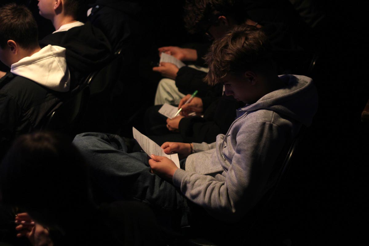 Žiaci boli počas predstavenia dobrovoľne vtiahnutí do aktivít, ktoré súviseli s pohybom na internete, špeciálne sociálnych sieťach a s výstupmi umelej inteligencie. Herec Andrej Polakovič prítomných divákov previedol ukážkami viacerých nebezpečenstiev, ktoré na užívateľov globálnych sietí číhajú. Videli sme postupy, aj možné dôsledky. Predstavenie bolo síce založené na tzv. one man show, ale postupne sme sa ocitli zapojení všetci. Vyskúšali sme si stratégie ako fishing, trolling, stalking, Modrá veľryba, deep fake... Ak neviete, o čo ide, určite by ste si mali toto edukatívne, divadelne akčné a výtvarne zaujímavé predstavenie pozrieť, aby ste „zažili silu internetu a umelej inteligencie na vlastnej koži.“