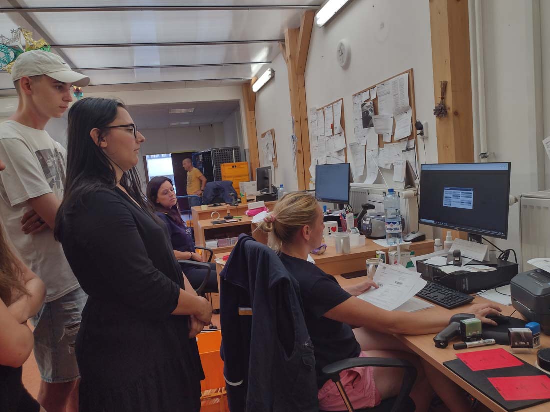 Potom už mohli vidieť prácu zamestnankýň colno-deklaračného oddelenia Slovenskej pošty, a. s. Zatiaľ, čo všetky ostatné pošty pracujú v informačnom systéme APOnet, ktorý žiaci už poznajú, tu je tomu inak. Zásielku najprv zamestnanec zosníma a doplní údaje cez ICS2/LC. Odtiaľ postupuje ďalej na skladovanie a výpravu v ECK a následne sa odošle cez LOGIS. Tento informačný systém používajú aj oblastné uzly. Tu sa zásielka zaeviduje v karte a ako súčasť záveru aj v zozname.