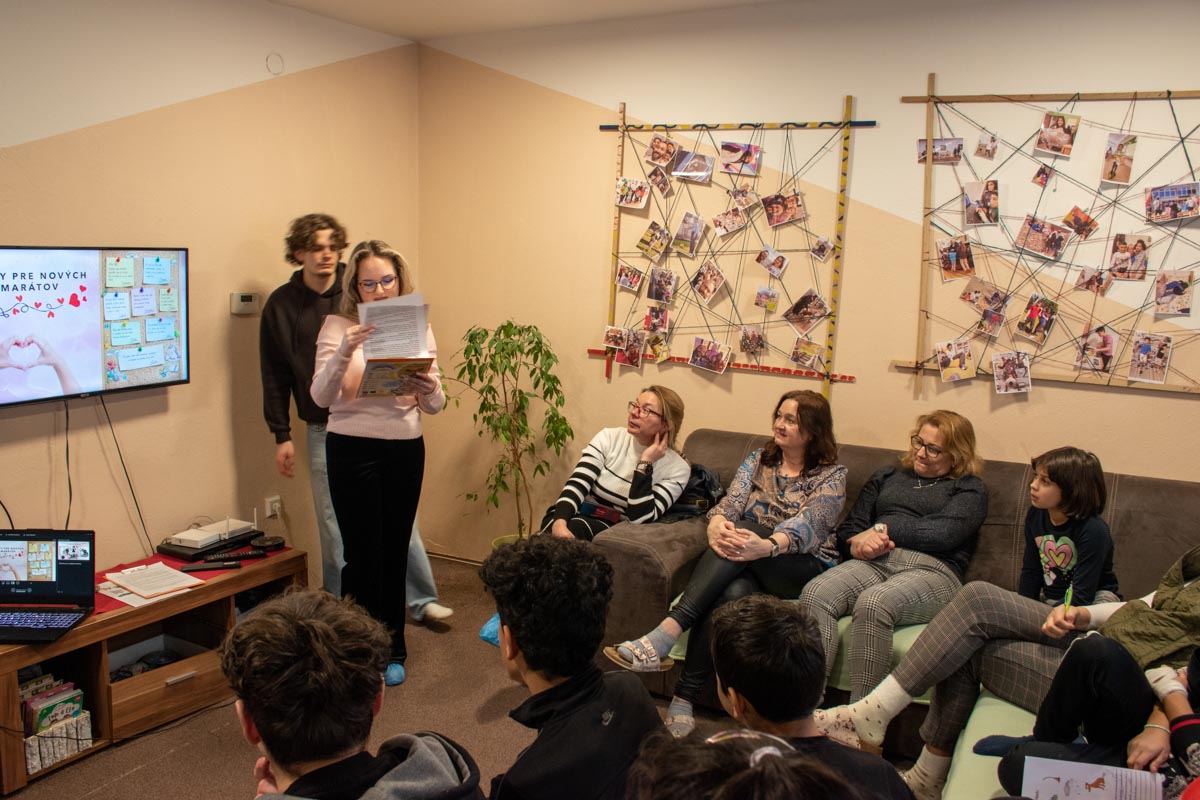 Prvotná tréma a obavy našich žiakov pominuli hneď po úvodnom, veľmi srdečnom privítaní riaditeľkou centra PaedDr. Janou Sýkorovou. Deti sa ochotne zapájali do pripravených aktivít a radosť, ktorá z nich vyžarovala, urobila zo stretnutia výnimočný a nezabudnuteľný okamih plný pozitívnych emócií. Svedčia o tom aj slová Dominiky Jobovej z III. E: „Spočiatku som mala obavy, ako budú na nás deti reagovať, no tie ma opustili hneď, keď som videla, ako nás veľkoryso privítali. Od začiatku sa na nás milo usmievali, čo ma veľmi povzbudilo. Tešilo ma sledovať, s akým nadšením sa zapájali do aktivít. Miestami som mala pocit, akoby sme sa poznali už oveľa dlhšie. Pri fotení kalendára ma jedno z dievčatiek, Dianka, potiahlo za ruku, aby som sa išla odfotiť s ňou a napokon som sa fotila aj s ostatnými dievčatami. Nakoniec mi bolo ľúto, že už odchádzame, pretože mi za tú krátku chvíľu veľmi prirástli k srdcu. Som rada, že sme ich mohli potešiť a verím, že tento deň zostane v spomienkach aj im.“