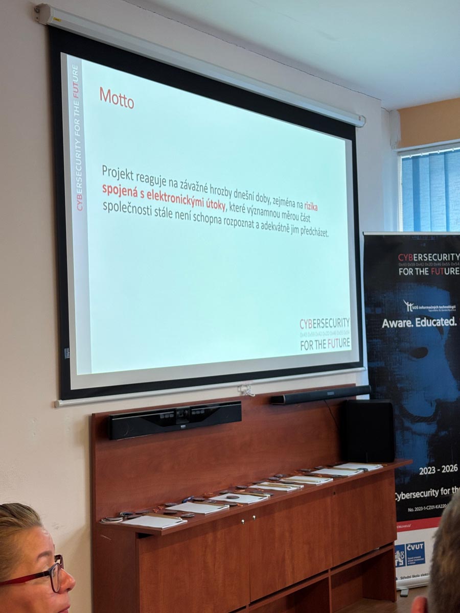 Ako prvý odborný rečník vystúpil Ing. Tomáš Zeman, PhD., ČVUT - tajomník/katedra telekomunikační techniky/Fakulta elektrotechnická. Vo svojej prezentácii priblížil ciele projektu a zdôraznil rastúci význam kybernetickej bezpečnosti v súčasnej spoločnosti. Poukázal na nárast kybernetických útokov a na potrebu systematického vzdelávania všetkých cieľových skupín – žiakov stredných škôl, vysokoškolských študentov aj učiteľov. Zároveň vyzdvihol význam kvalitných vzdelávacích materiálov a moderných laboratórií, ktoré sú nevyhnutné pre efektívne odborné vzdelávanie. Projekt CYB FUT bude preto pokračovať počas celého školského roka.