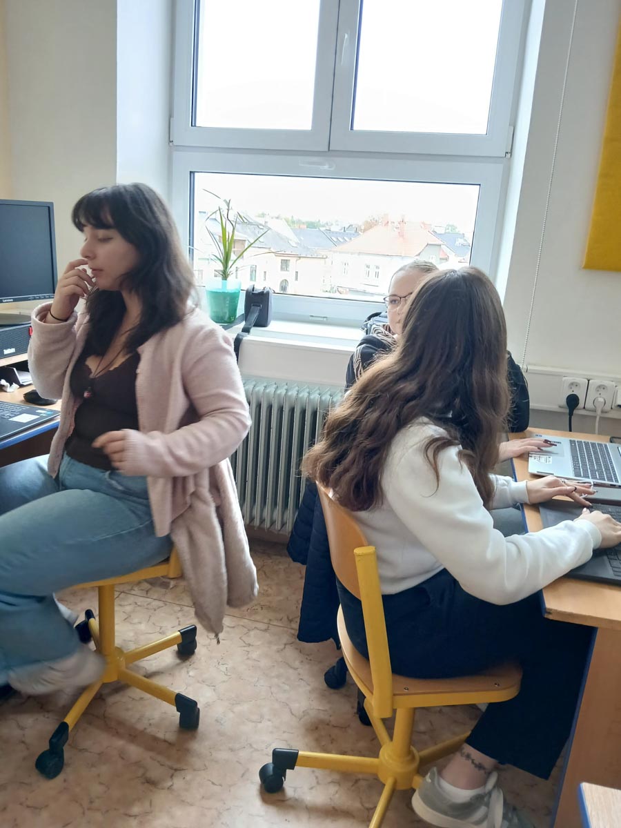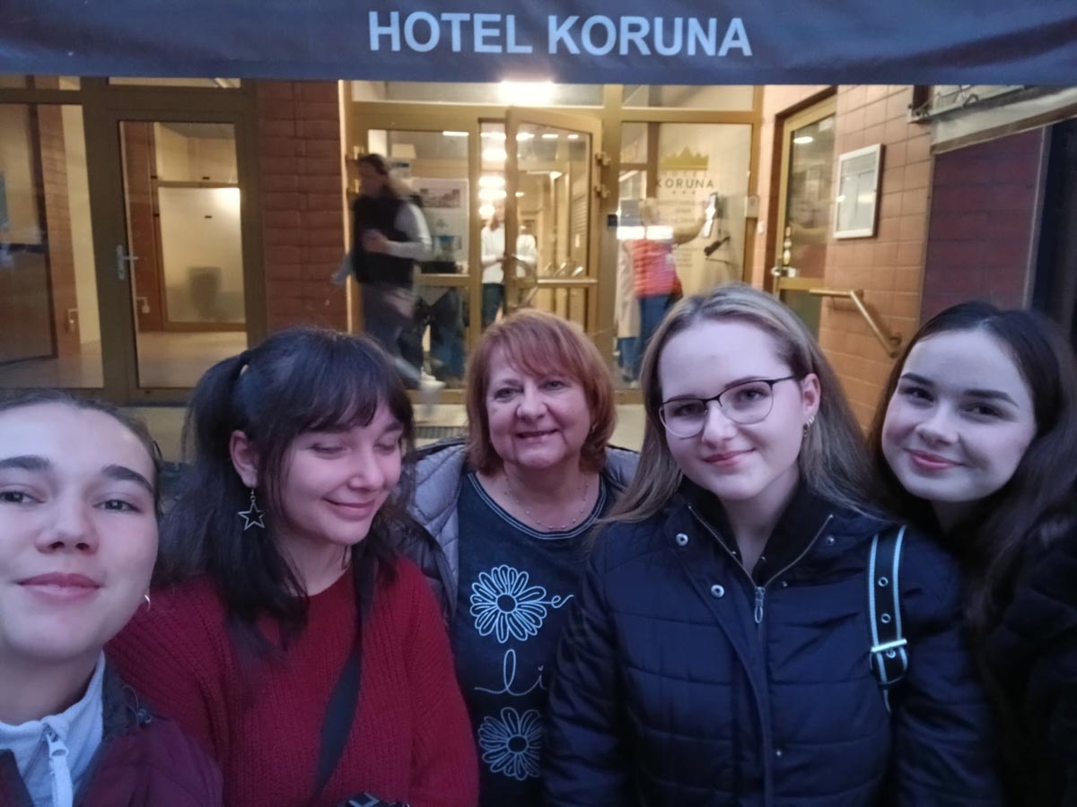 Asi o tri hodiny neskôr vystúpili dvaja naši kolegovia a trinásť žiakov v Ostrave pred internátom telekomunikačnej školy a ja s mojou kolegyňou Bc. Zuzanou Lišuchovou a tromi žiačkami sme pokračovali na ceste do Opavy. Po trojročnej prestávke opäť dostali príležitosť aj žiačky študijných odborov pracovník marketingu a klientsky manažér pošty z III. E triedy. Tento dvojčlenný tím sme doplnili o žiačku študijného odboru grafik digitálnych médií z III. B2, pretože našou úlohou počas projektu bolo pripraviť propagačné materiály pre študijné odbory Obchodnej akadémie a Strednej odbornej školy logistickej v Opave.