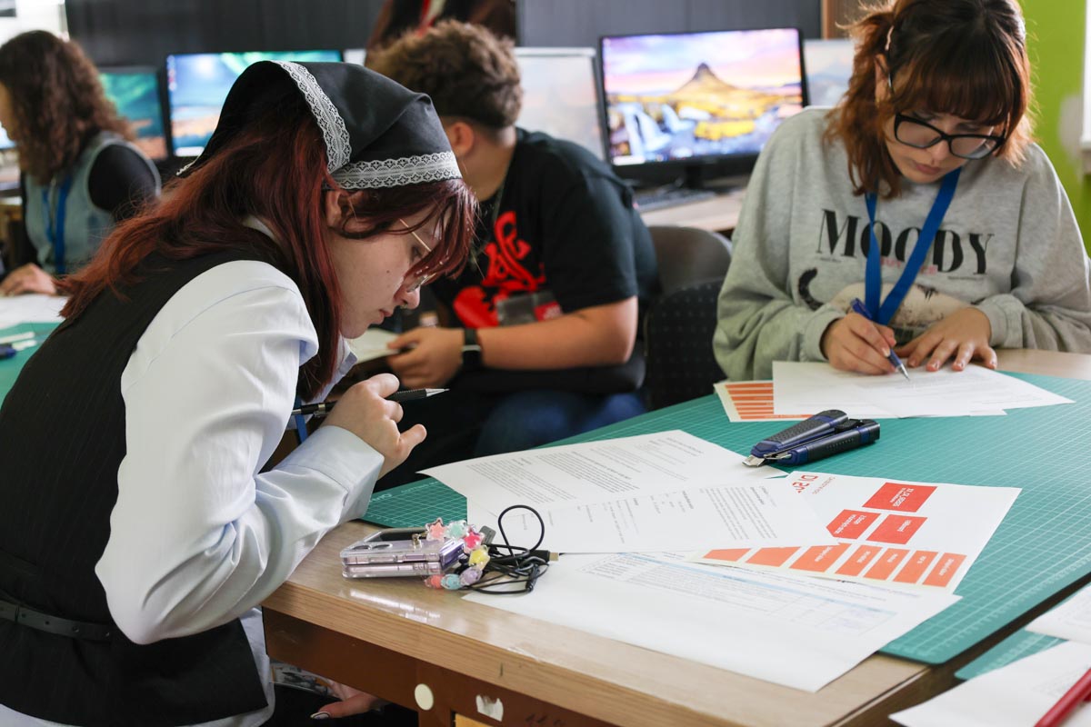Foto: Bc. Zuzana Lišuchová a Viktória Hanesová, majsterky OVY, žiaci a mediálny tím SOŠ IT